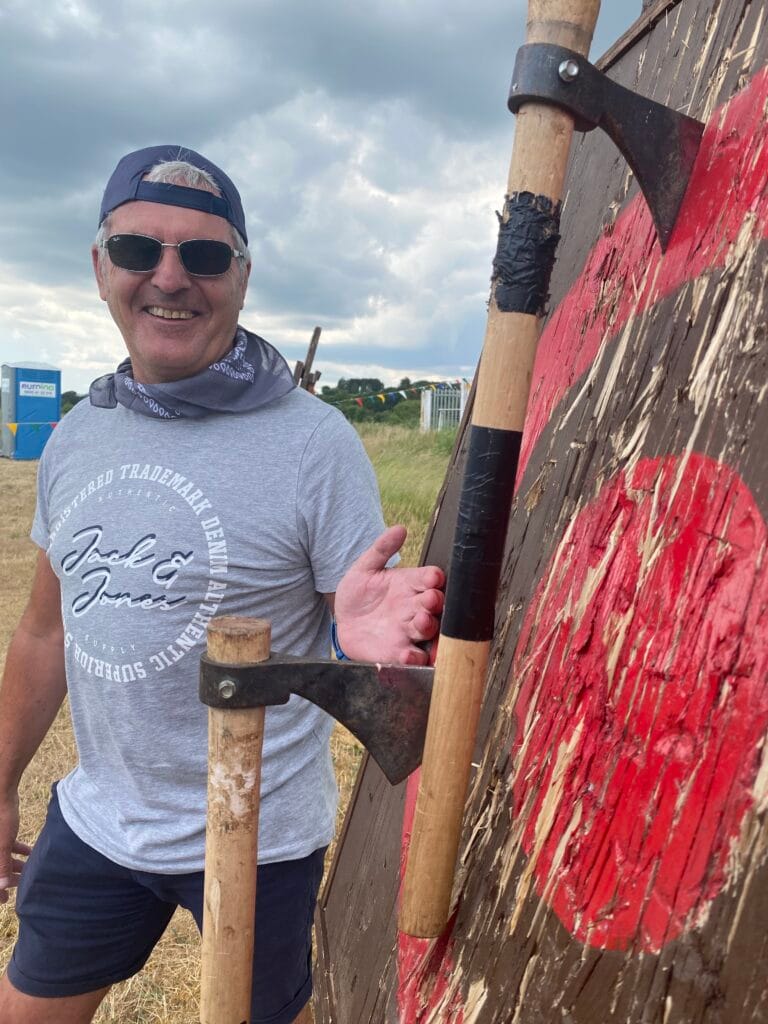 Then on to the axe throwing – with axes sent whirring to targets – as the teams released their inner Viking.