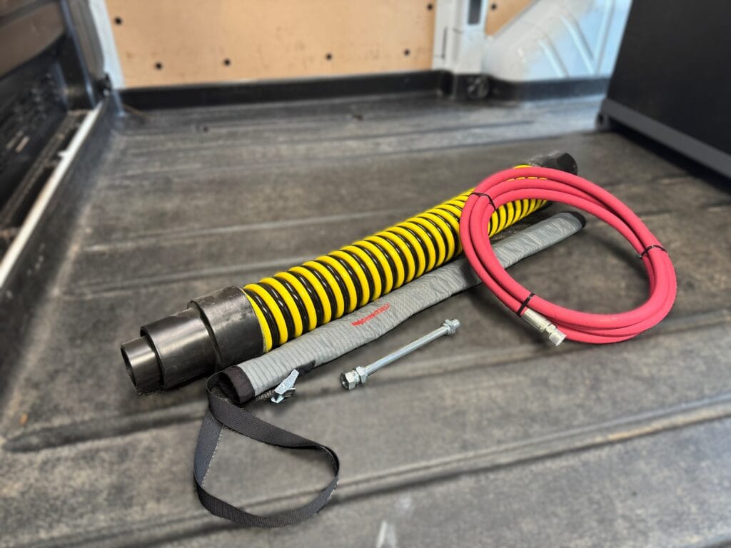 The jetting machine basics safety kit contains equipment needed to operate a jetting machine – with a jetting bar, a safety shroud, a tiger tail, and a safety hose.