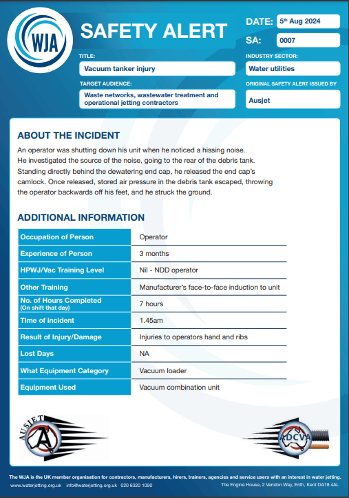 Vacuumation tanker crush incident near miss