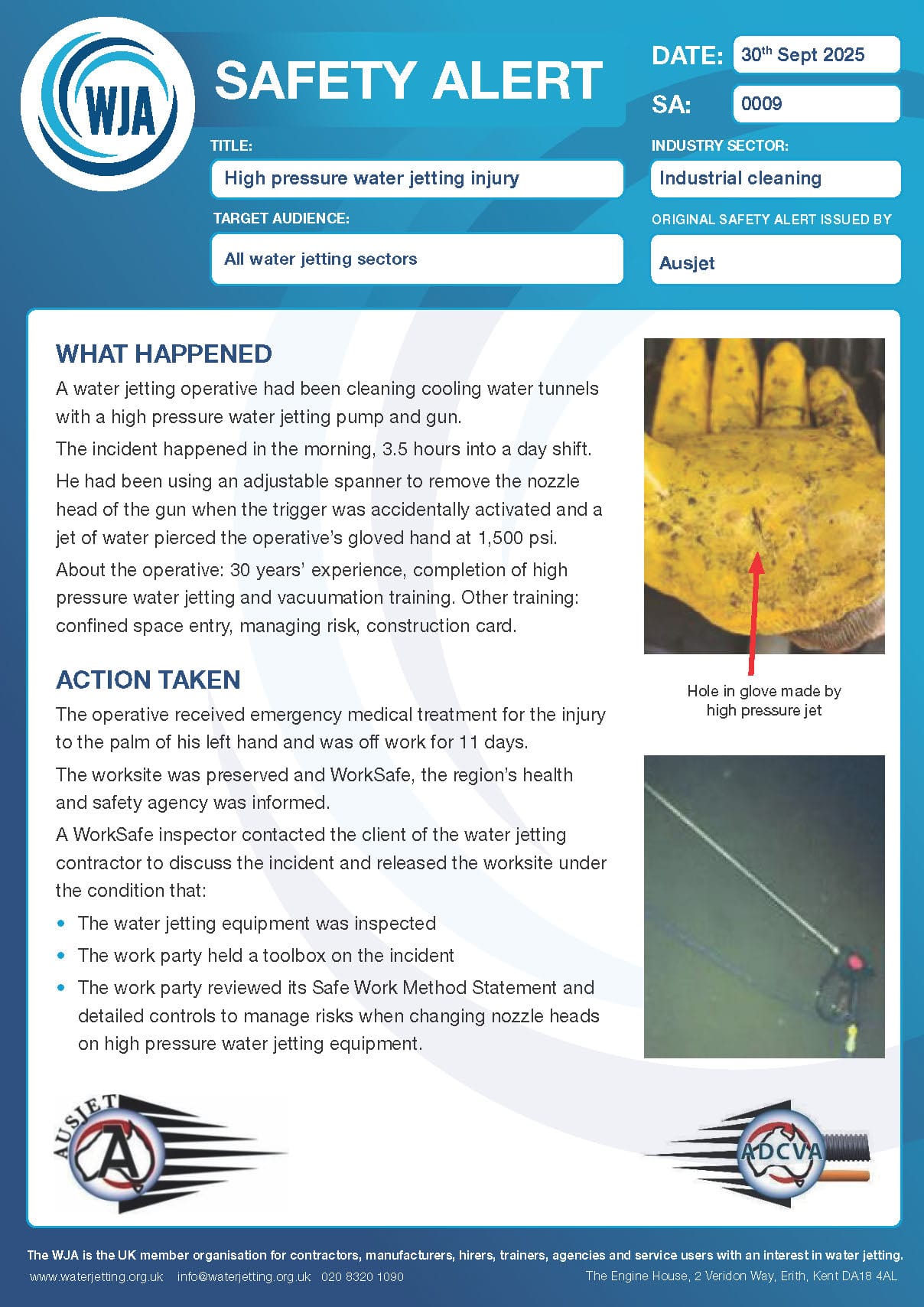 High pressure water jetting injury